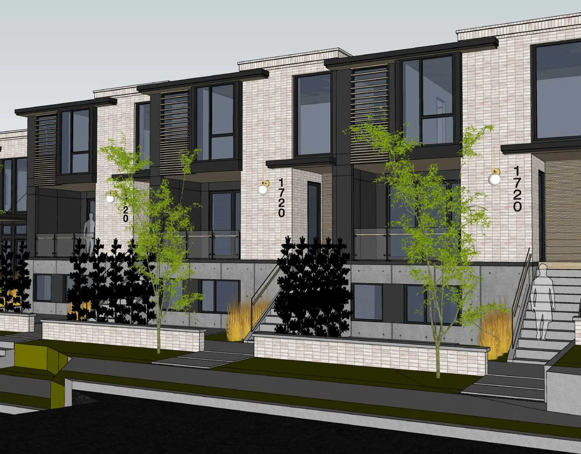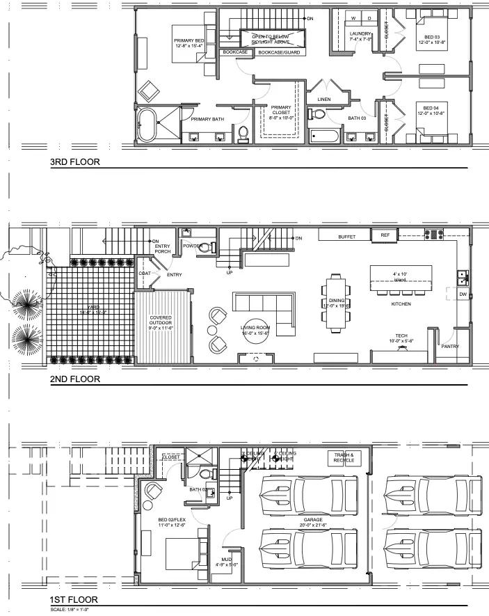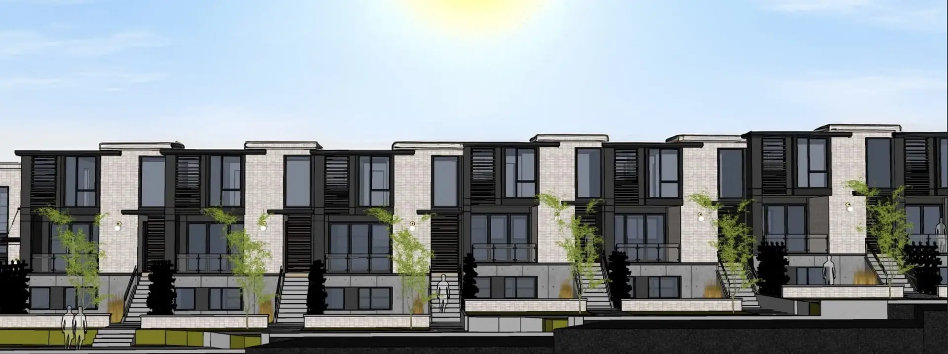 The flagship unit spans two floors and has three bedrooms plus an office with thoughtfully curated space, while the remaining seven three-story homes offer four bedrooms and 3.5 bathrooms.